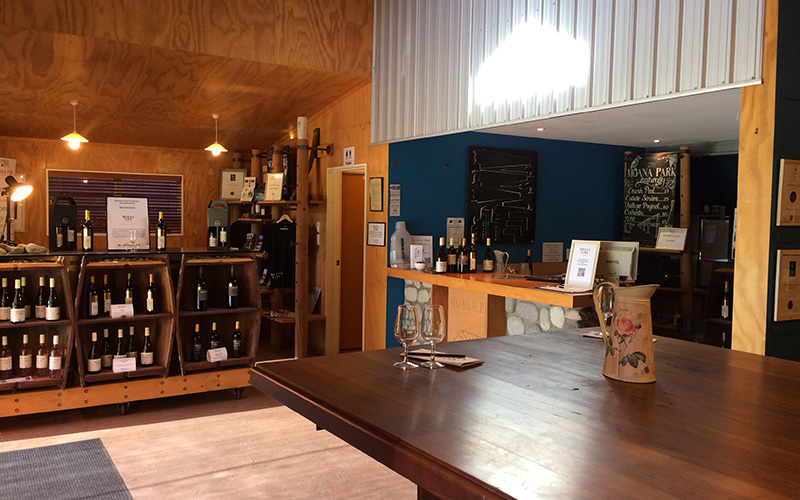 For a private party on a vineyard, this is the real thing.  The cellar door at Moana Park winery in Puketapu, Napier, has views out to the vines and the winery, the inside the walls are lined with bottles of Moana Park’s delicious Hawke’s Bay wines.